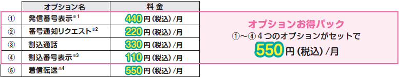 | 通話明細発行 | 220円/月 | ||
